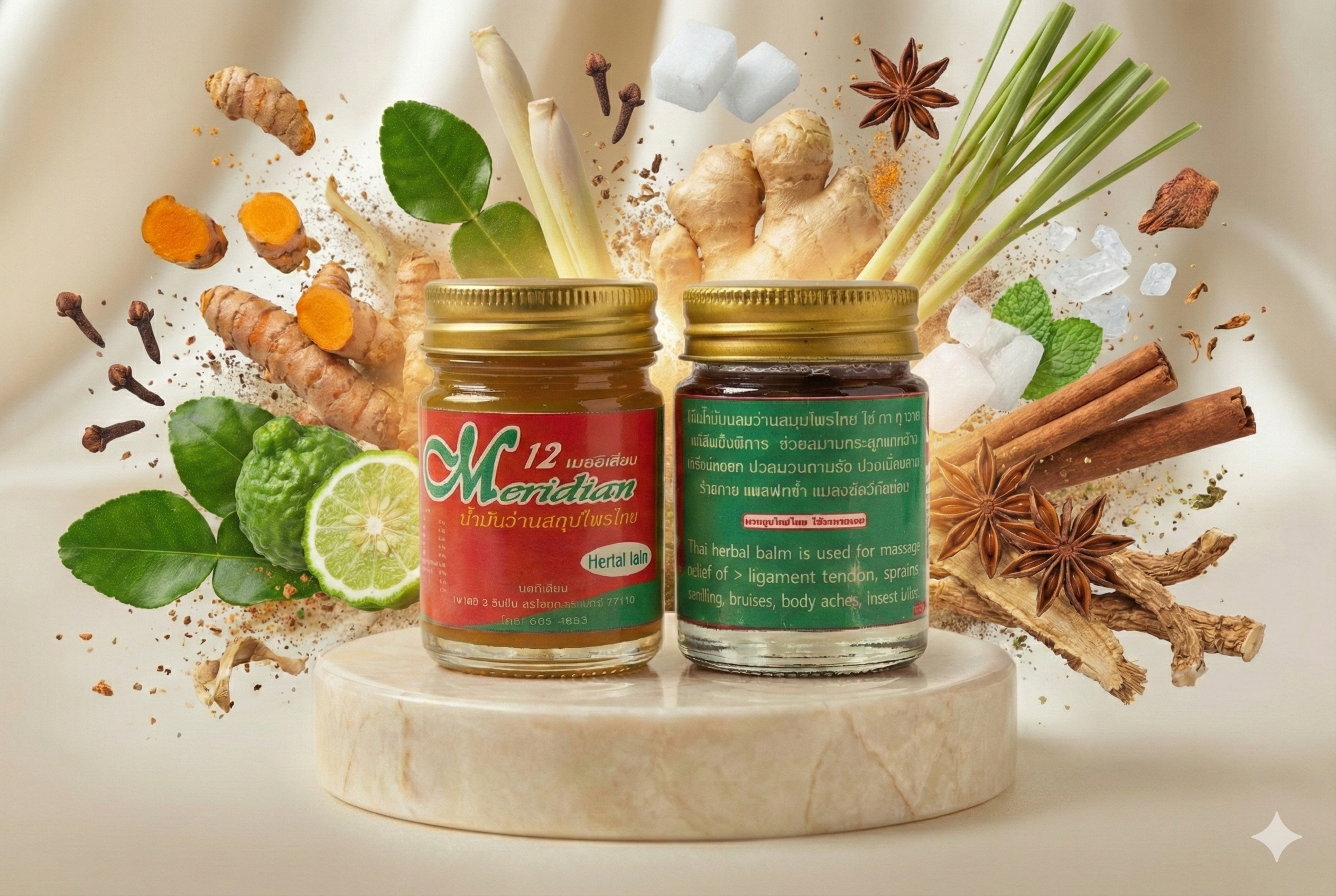 • พิมเสนและการบูร : เพิ่มความเย็นซ่า สดชื่น ช่วยเปิดรูขุมขนและกระตุ้นการทำงานของหัวใจ